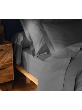 Drap Plat 180 x 290 cm Uni 57 fils Lina Charbon...