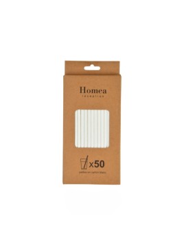 Set De 50 Pailles En Carton Blanc 20 cm