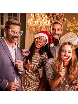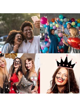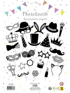 Lot De 24 Accessoires Photobooth Argent Pailleté