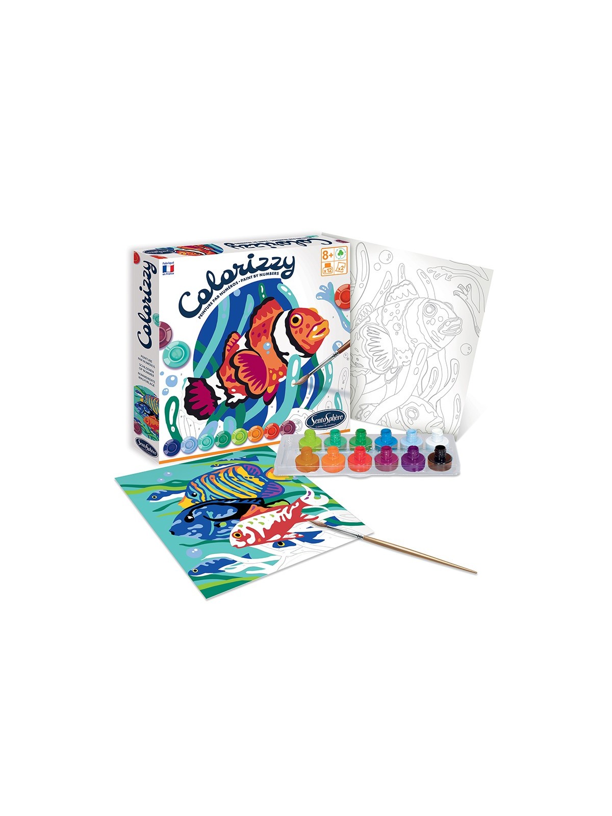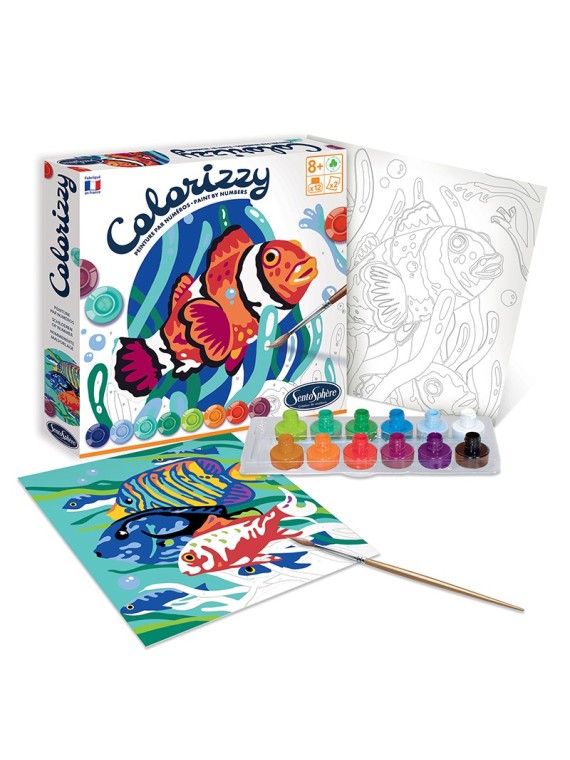 Profitez d'un agréable moment créatif pour peindre deux tableaux de peintures par numéros et donner vie à de superbes fonds marins illustrant de superbes poissons.