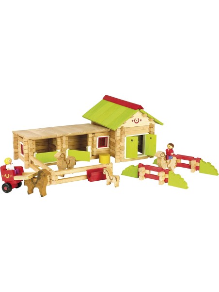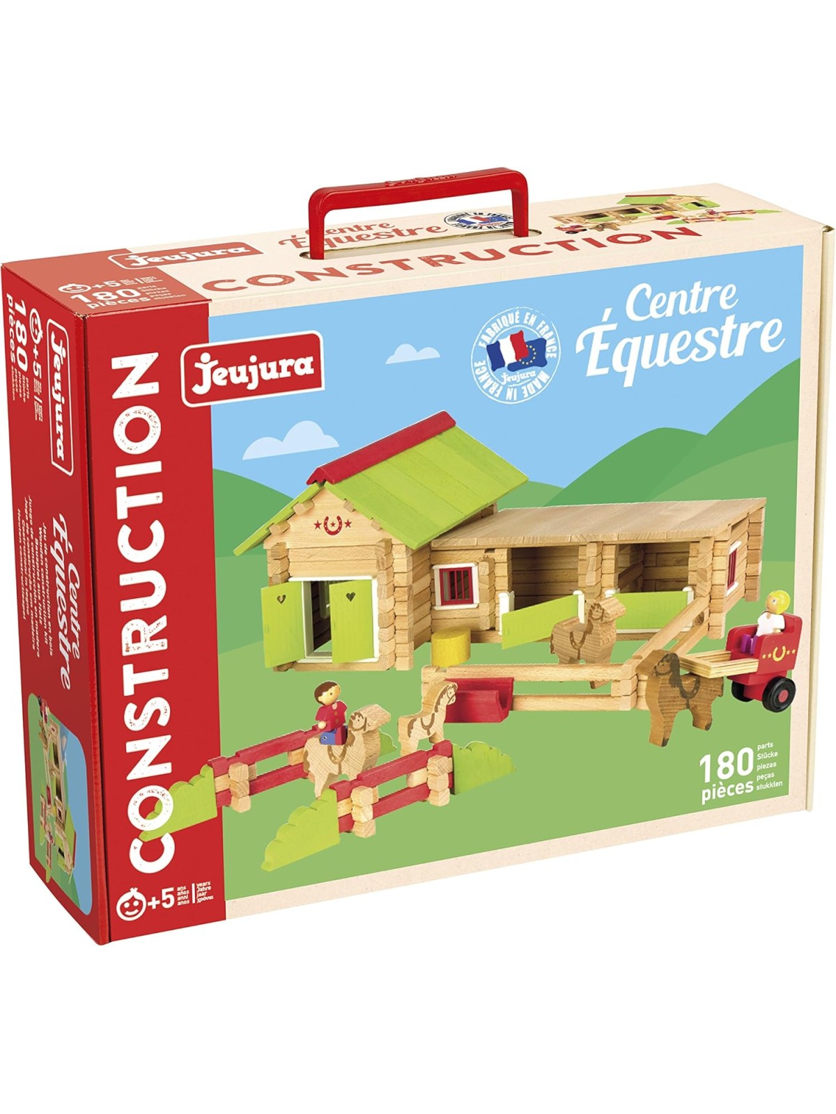 Afin de développer sa dextérité et son imagination, et pour créer l'univers de son centre équestre, l'enfant construira son poney-club et s'amusera avec les personnages, les chevaux et la calèche en bois. Centre équestre - 180 pièces : jeu de construction en bois naturel et teinté avec une notice de montage, valisette carton : 39 x 32 x 11 cm - a partir de 5 ans.