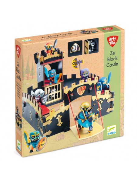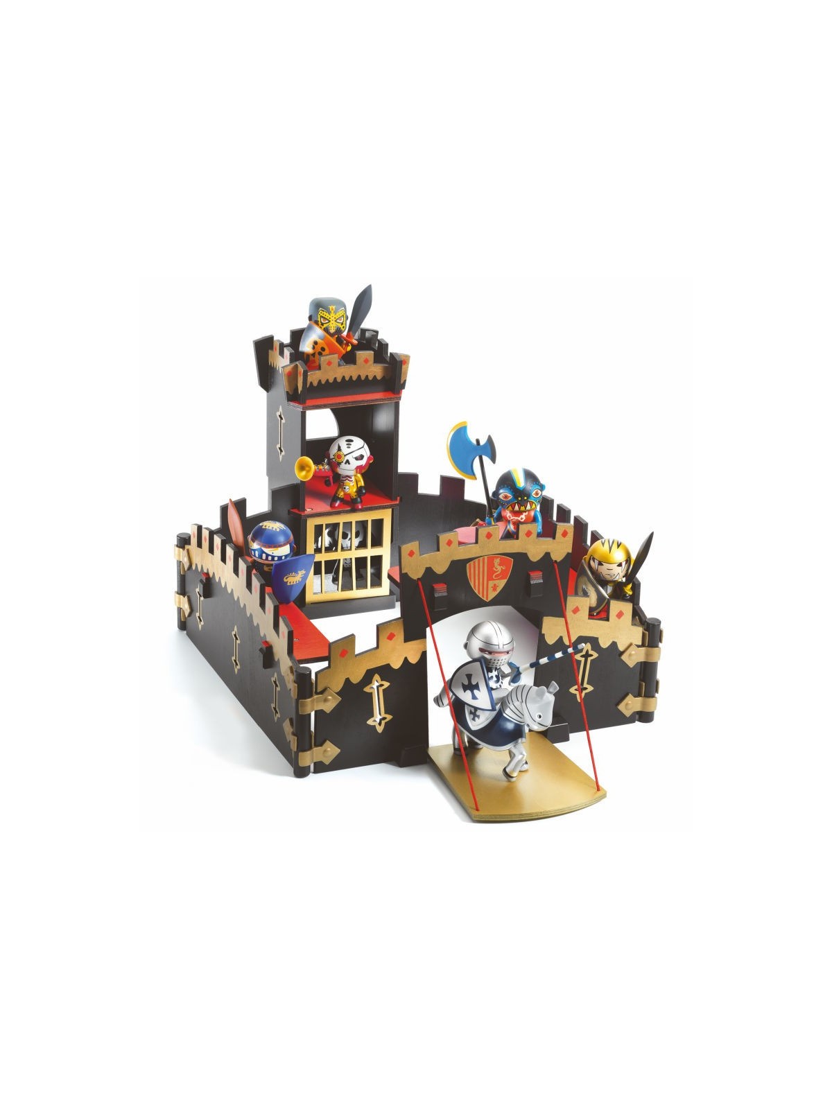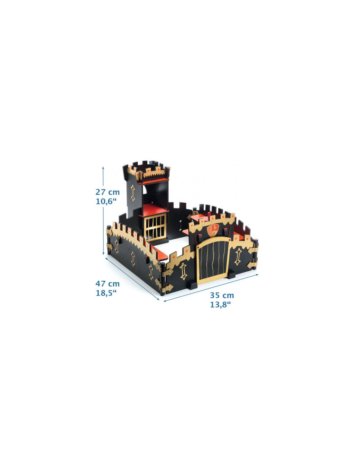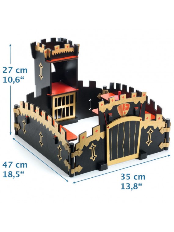 Magnifique château en bois de couleur noir, rouge et doré, les fans de chevalier vont l'adorer ! Dans le château on y trouve un cachot pour enfermer les ennemis et une tour pour surveiller ce qui se passe. Les chevaliers Arty toys de Djeco sont compatibles avec ce jouet. Le château est vendu sans figurines.