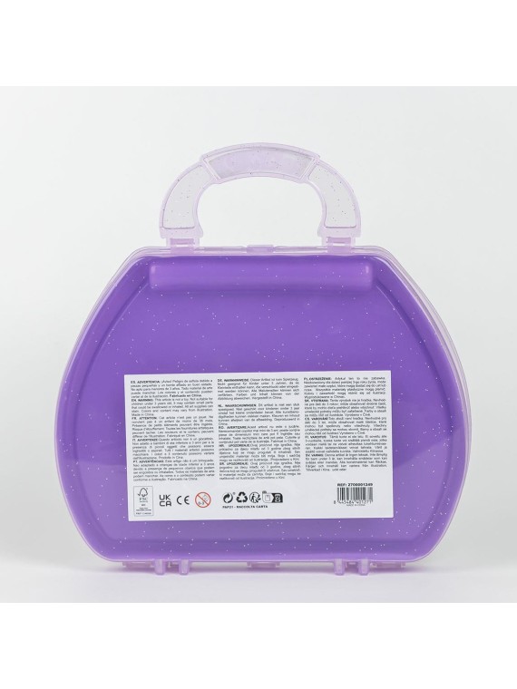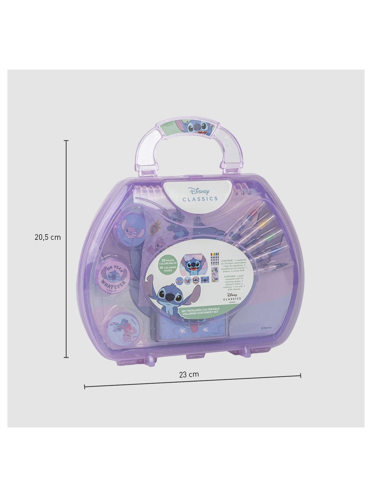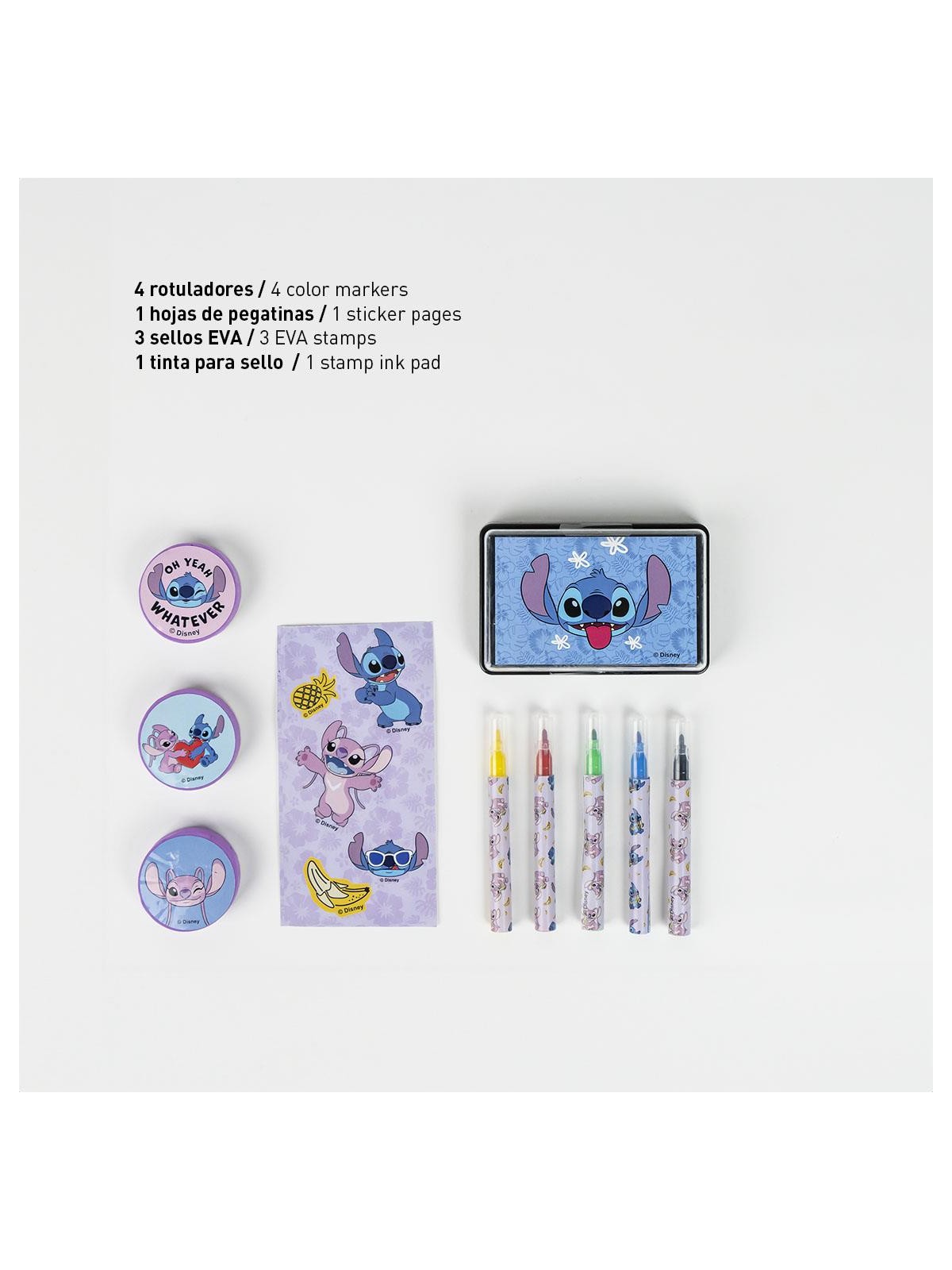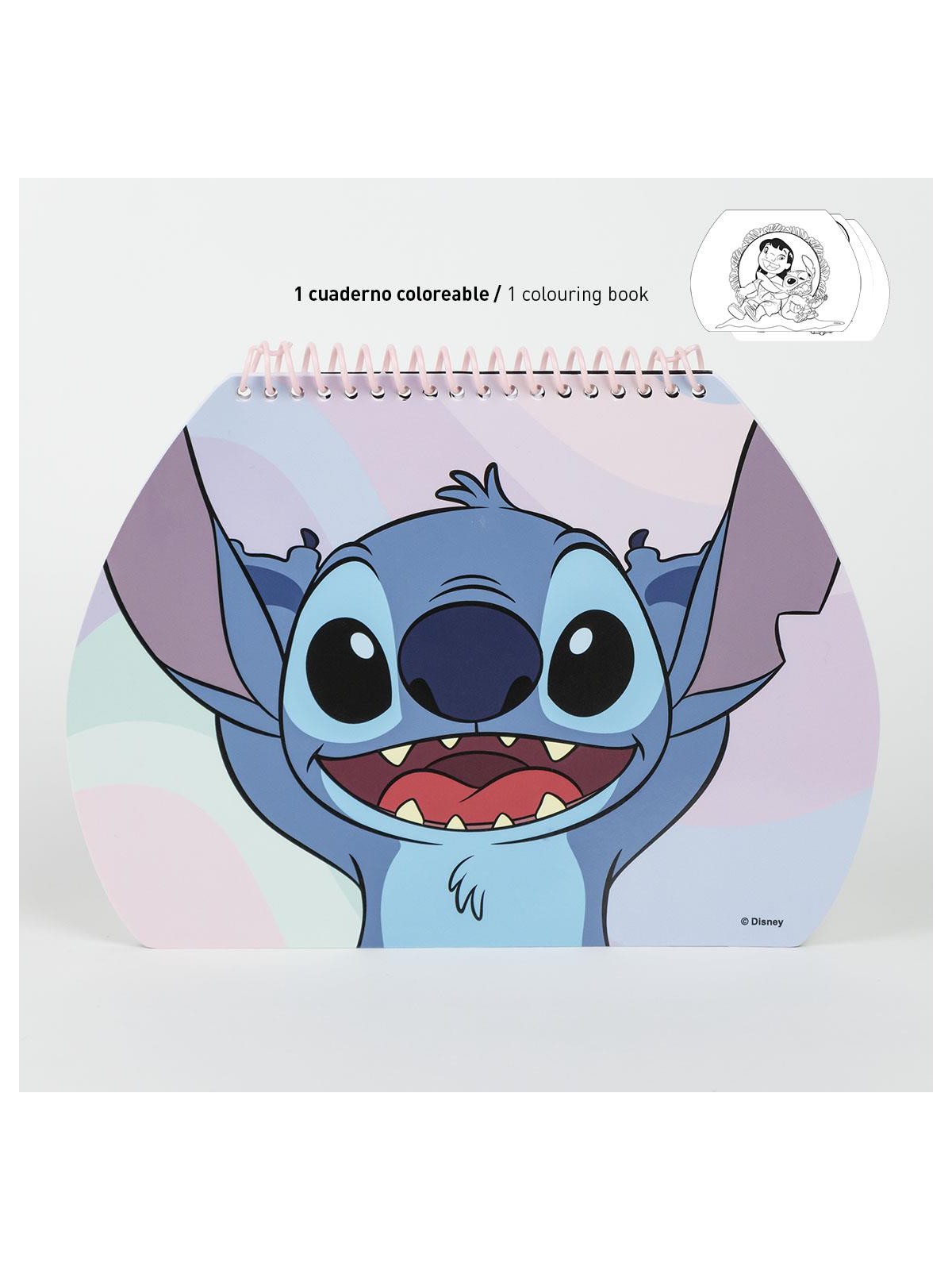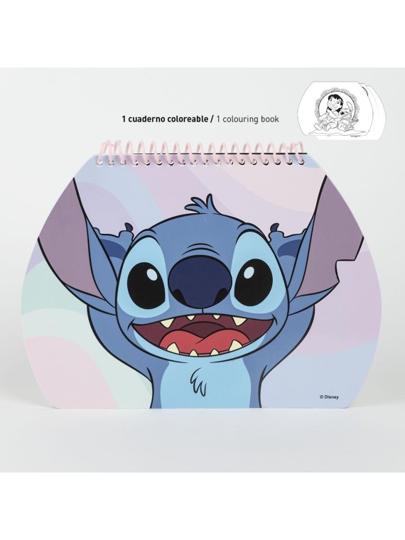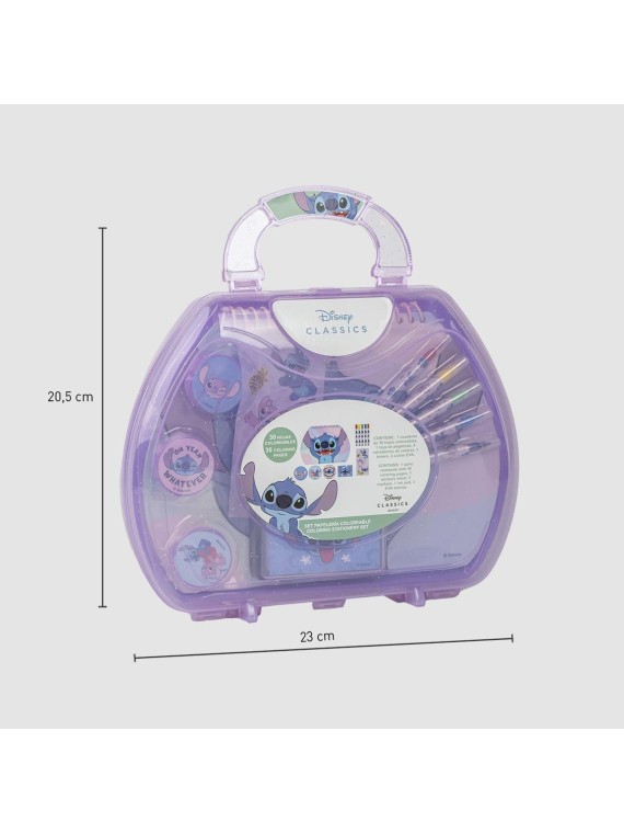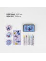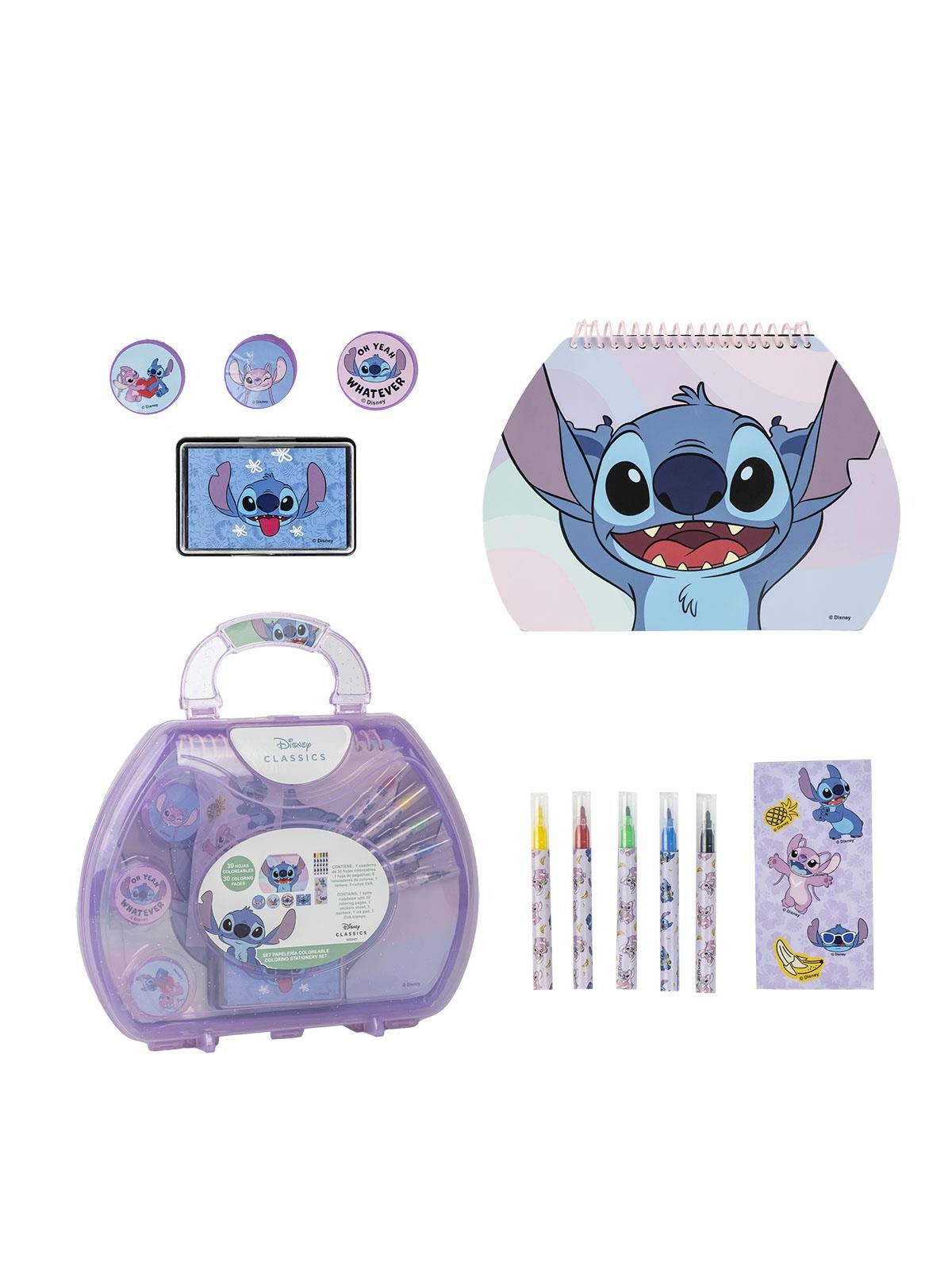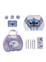 Un set de papeterie à colorier avec un porte document composé de de feutres, de tampons, un encrier et des stickers.