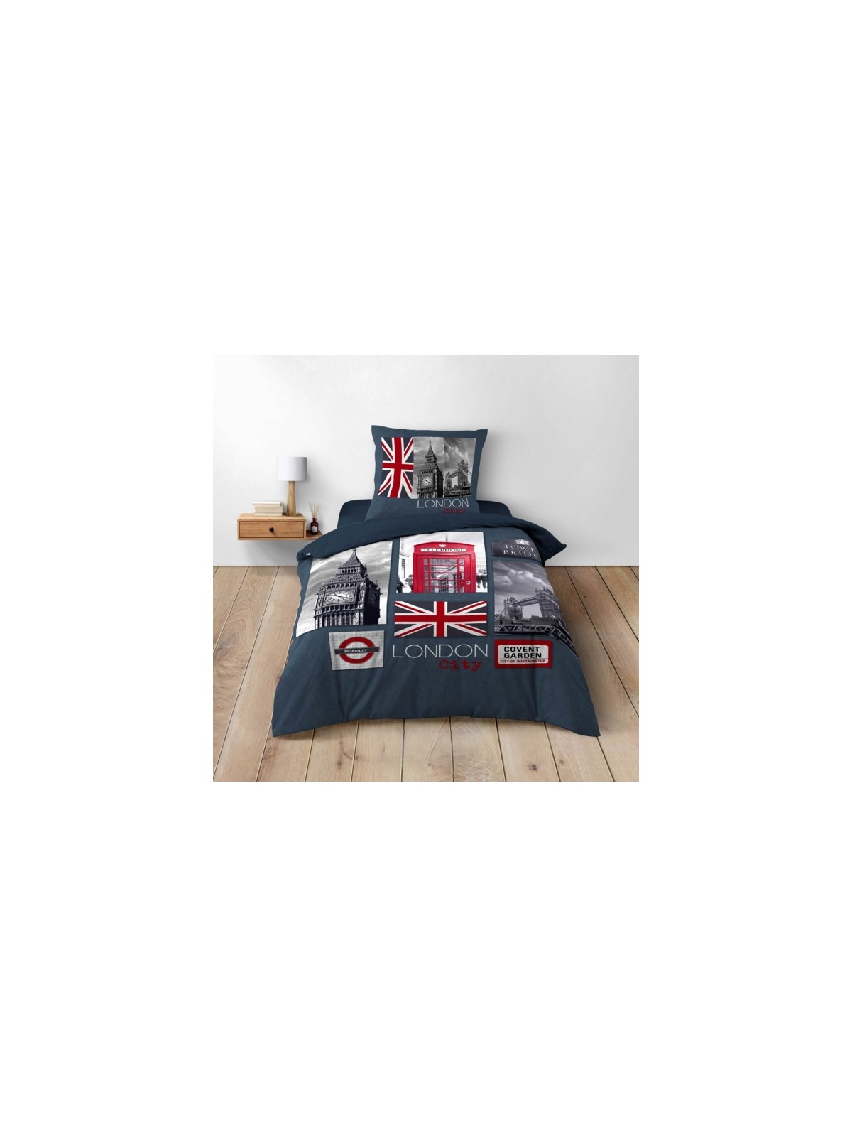 Découvrez cette parure de lit et sa taie d’oreiller sur le thème de Londres 100% coton ! La housse de couette mesure 140x200 cm avec une finition pression pour la fermeture et la taie d’oreiller mesure 63x63 cm. Une ambiance qui fait voyager !