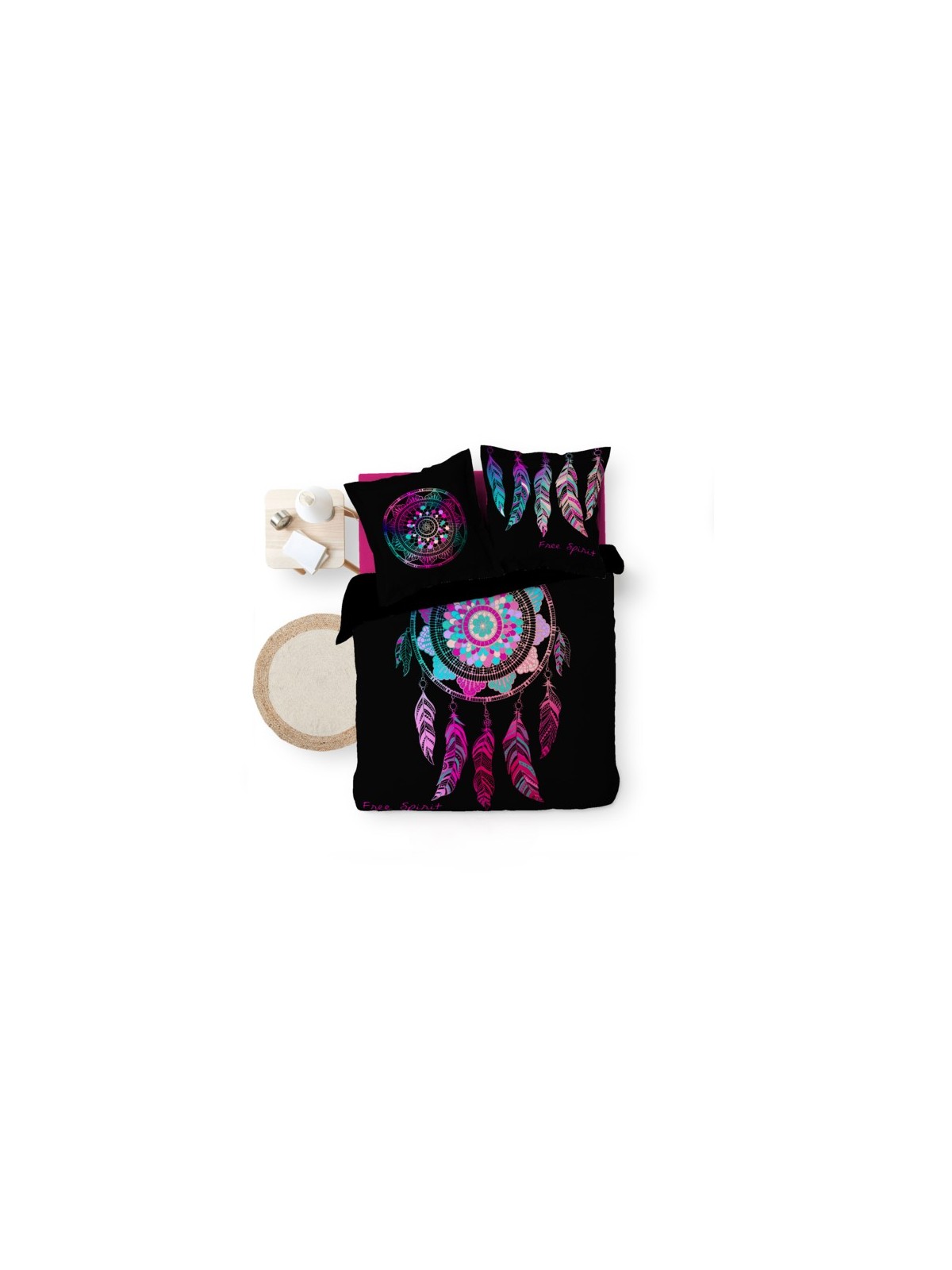 Découvrez cette parure de lit et ses 2 taies d’oreiller 100% coton ! La housse de couette mesure 240x220 cm avec une finition pression pour la fermeture et les taies d’oreiller mesure 63x63 cm. Une ambiance qui détend !