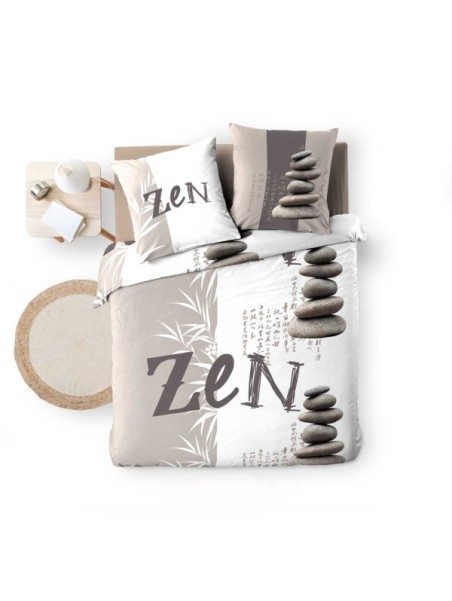 Découvrez cette parure de lit et ses 2 taies d’oreiller 100% coton ! La housse de couette mesure 240x220 cm avec une finition pression pour la fermeture et les taies d’oreiller mesure 63x63 cm. Une ambiance qui détend !