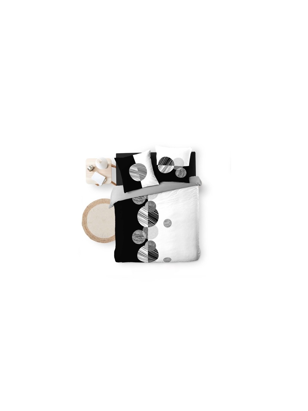 Découvrez cette parure de lit et ses 2 taies d’oreiller 100% coton ! La housse de couette mesure 240x220 cm avec une finition pression pour la fermeture et les taies d’oreiller mesure 63x63 cm. Une ambiance qui détend !