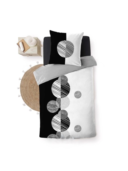 Découvrez cette parure de lit et 1 taie d’oreiller 100% coton ! La housse de couette mesure 140x200 cm cm avec une finition pression pour la fermeture et la taie d’oreiller mesure 63x63 cm. Une ambiance qui détend !