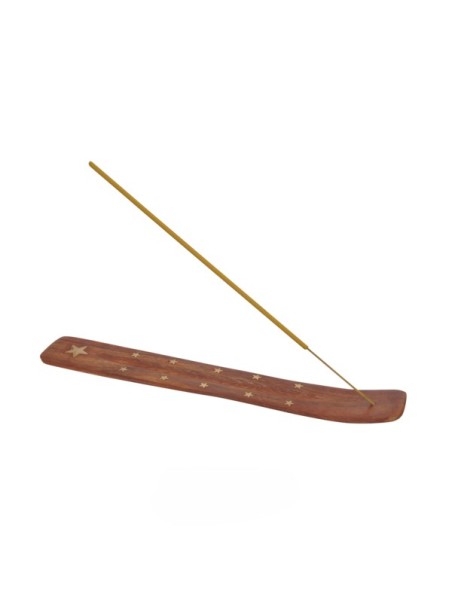 Porte Encens En Bois Avec Étoiles Dorée 26 cm