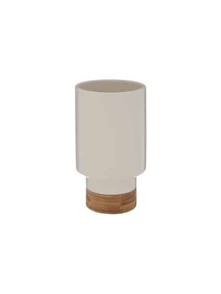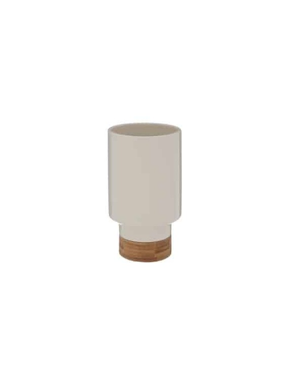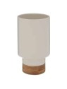 Vase Cylindrique En Céramique Blanc Et Support En Bambou 10 x 18,2 cm