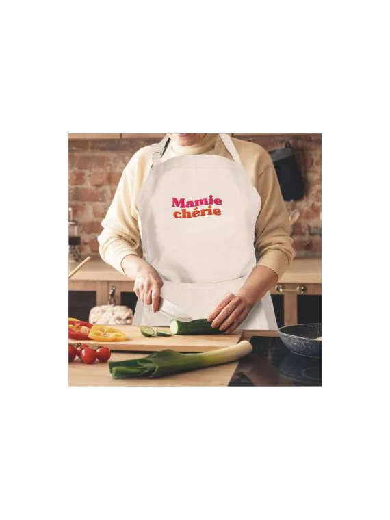 Conçu en 100 % coton et d’une élégante couleur blanche, il arbore l’inscription "Mamie Chérie", un détail qui ne manquera pas de lui faire plaisir.