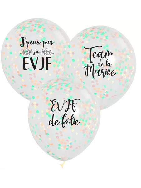 Lot De 3 Ballons Confettis Imprimé EVJF 30 cm