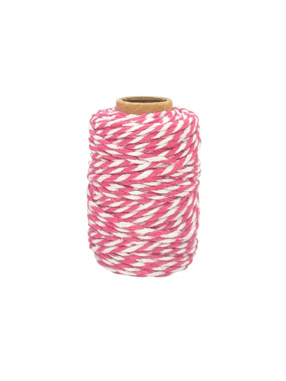 Ficelle En Coton Bicolore Fuchsia Et Blanc 1,5 mm x 25 m