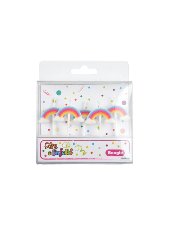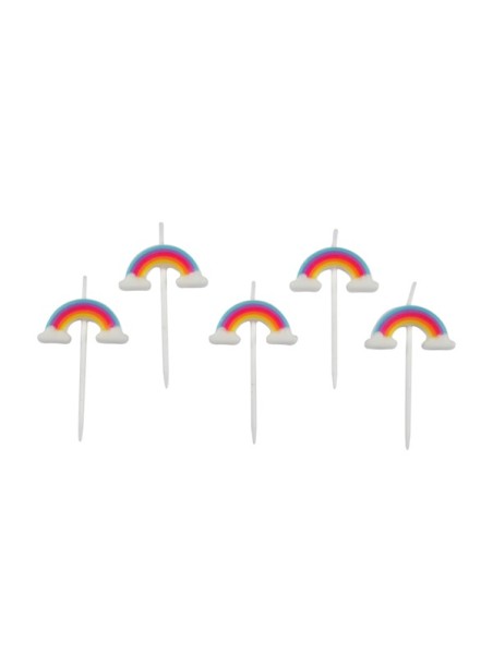 Offrez-vous ce Lot De 5 Bougies D'Anniversaire En Forme D'Arc-En-Ciel Avec Support En Plastique Rainbow et rendez votre célébration encore plus spéciale et colorée !