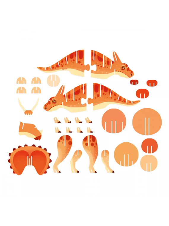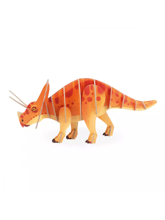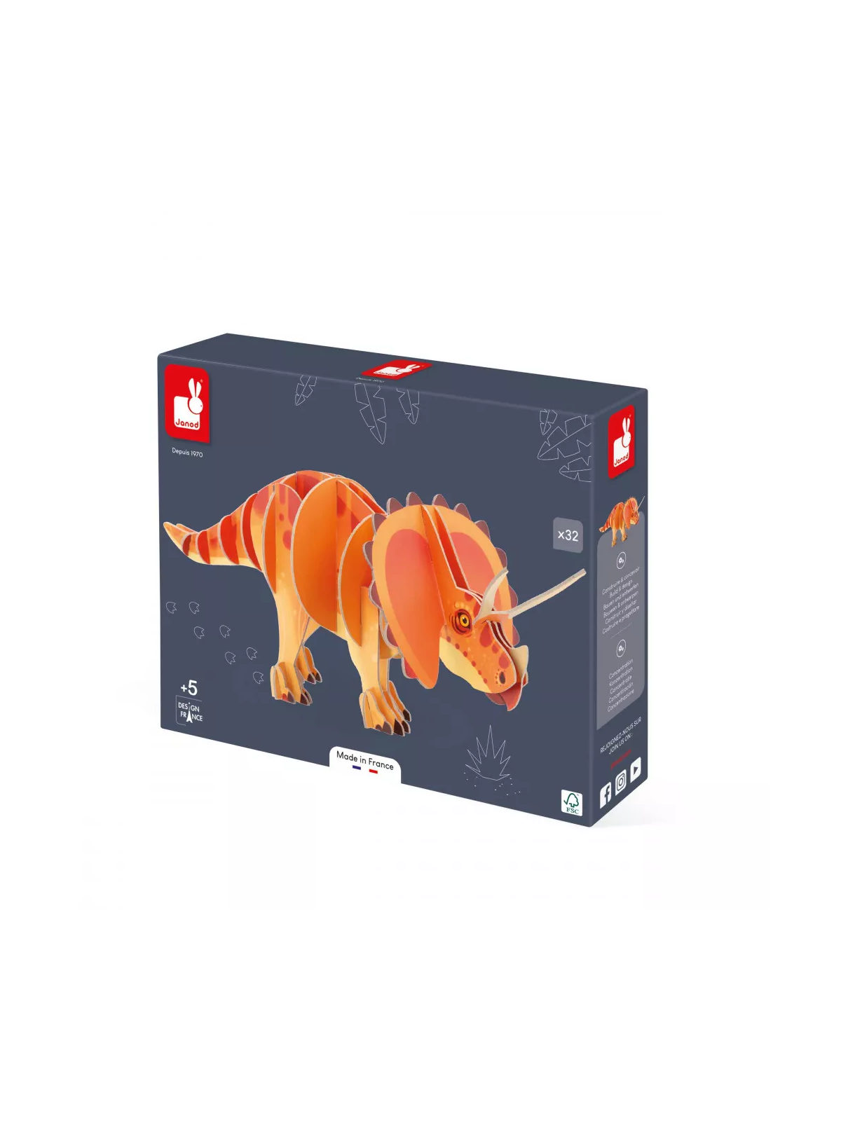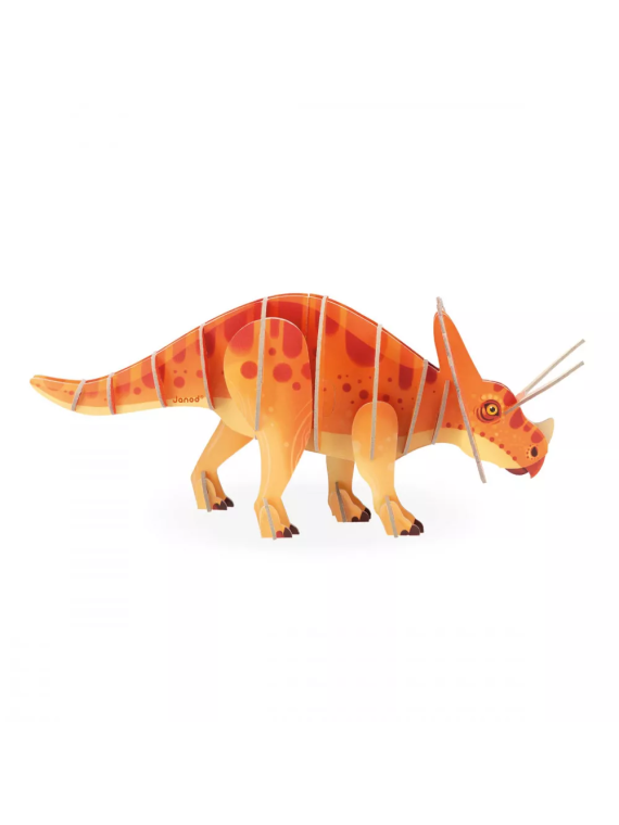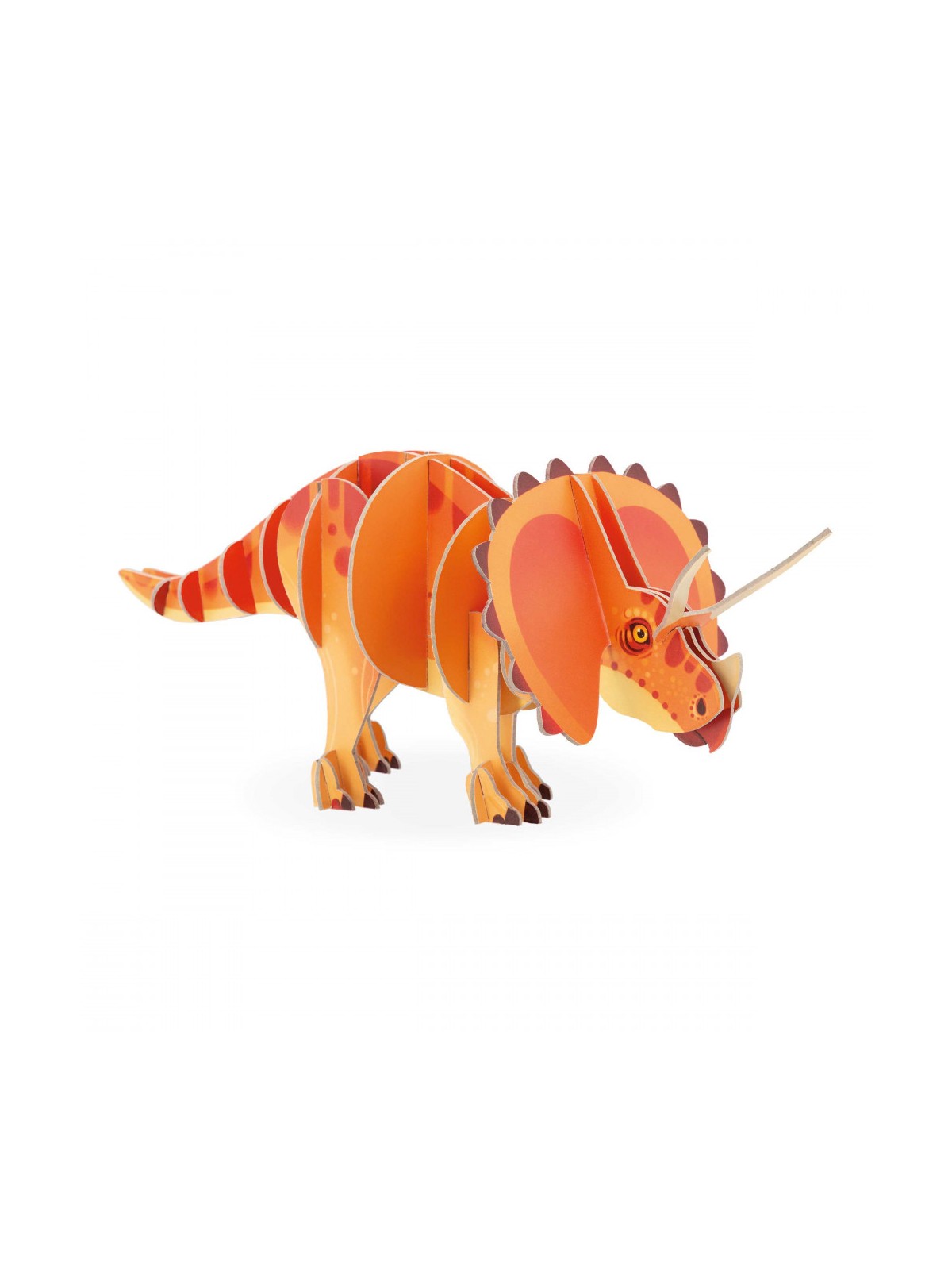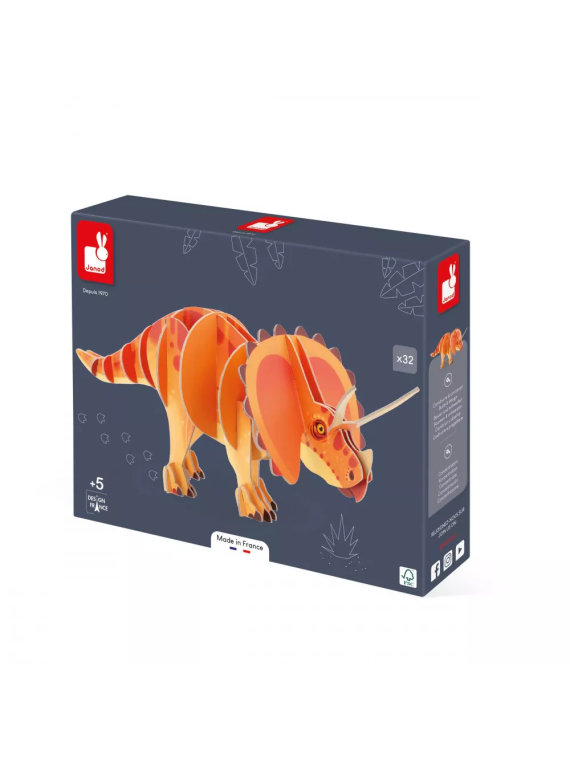 Quoi de plus impressionnant que de donner vie au plus connu de tous les dinosaures grâce à un puzzle 3D ! 32 pièces en carton imprimées recto-verso à assembler permettent de construire ce magnifique tricératops aux jolis tons orangés, reconnaissable à sa grande collerette et à ses 3 impressionnantes cornes sur le nez ! A la fois jeu de construction et puzzle en volume, cette activité est idéale pour les enfants à partir de 5 ans. Ce beau spécimen s'assemble sans colle, ce qui permet de le faire et le défaire à l'infini. Il peut également servir de déco dans la chambre de nos passionnés de dinosaures ! Ce puzzle dinosaure développe à la fois la concentration , la logique et l'imagination des enfants. Votre enfant prendra plaisir à l'assembler lui-même en suivant la notice de montage. Une fois terminé, il mesure 36 cm de long ! Ce puzzle est fabriqué en France, en carton FSC® mixte et à base d’encres végétales.