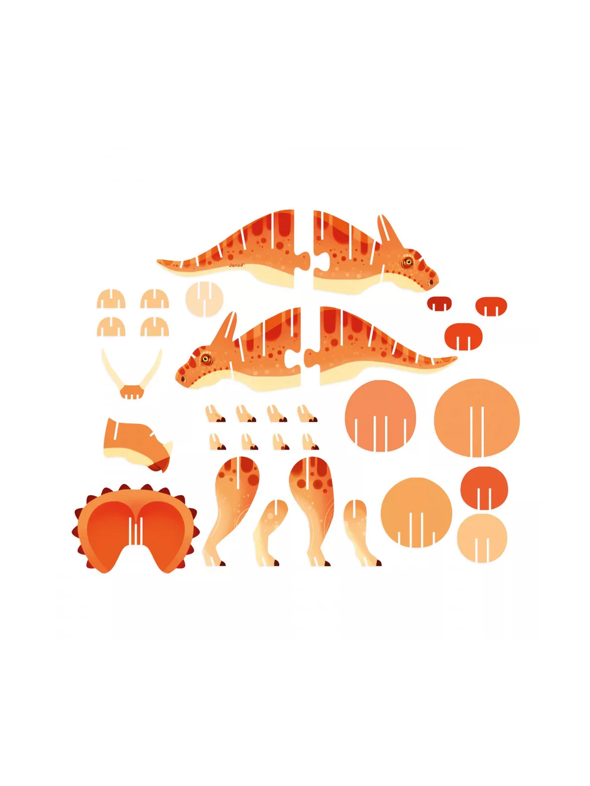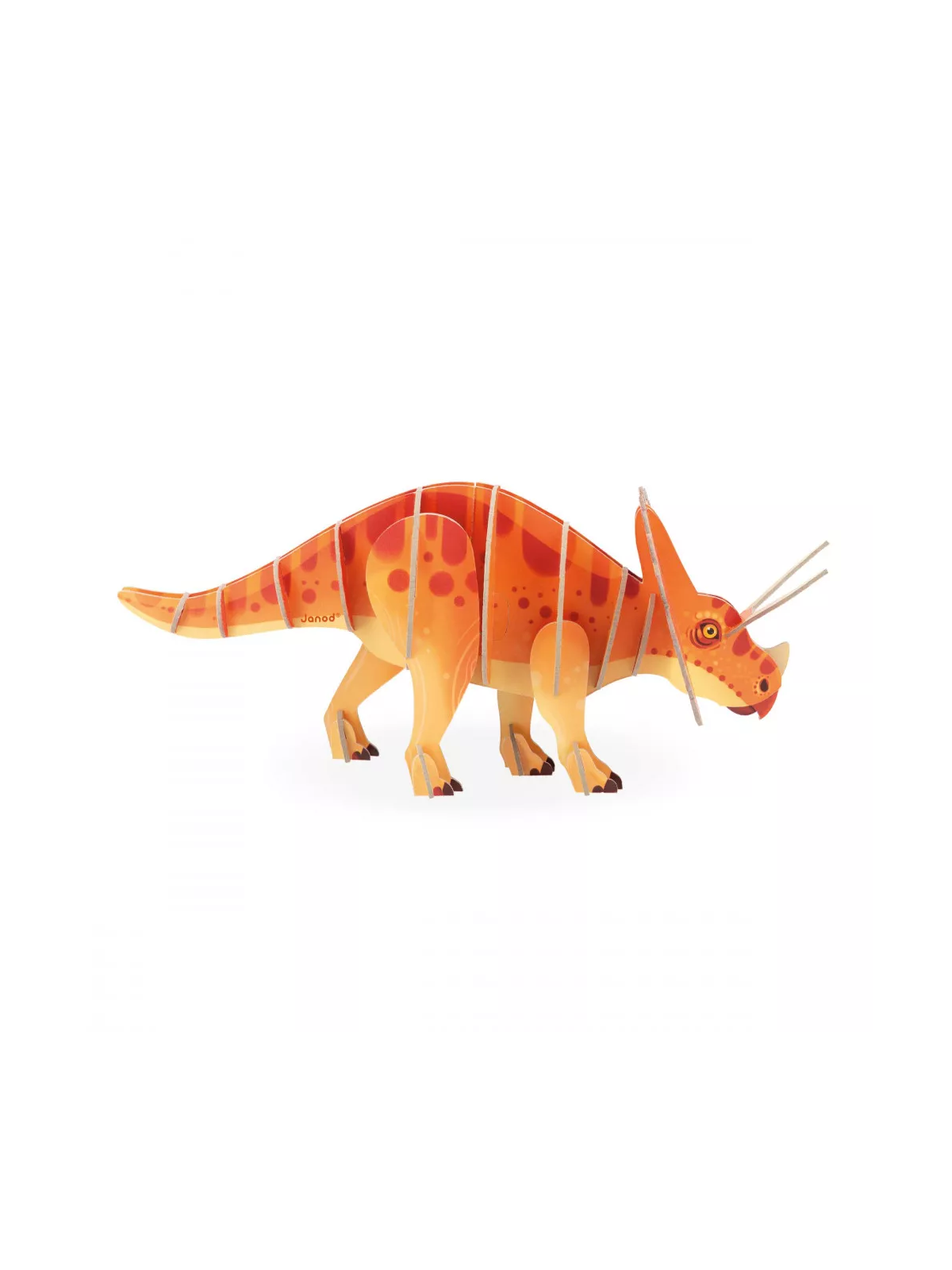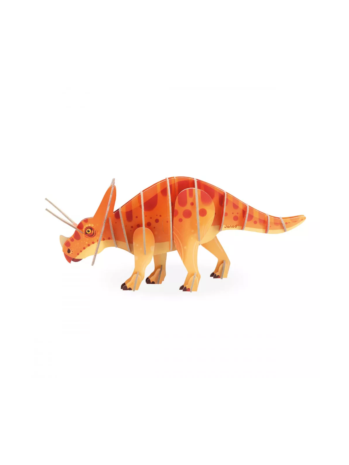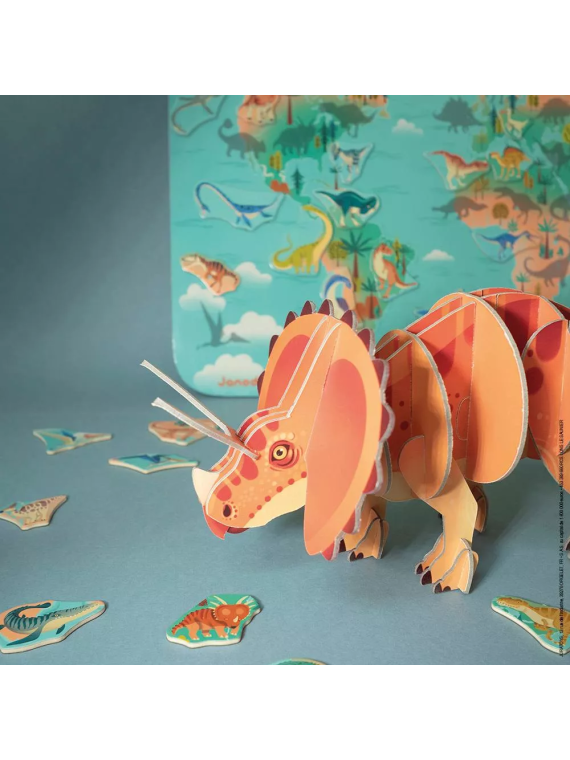 Quoi de plus impressionnant que de donner vie au plus connu de tous les dinosaures grâce à un puzzle 3D ! 32 pièces en carton imprimées recto-verso à assembler permettent de construire ce magnifique tricératops aux jolis tons orangés, reconnaissable à sa grande collerette et à ses 3 impressionnantes cornes sur le nez ! A la fois jeu de construction et puzzle en volume, cette activité est idéale pour les enfants à partir de 5 ans. Ce beau spécimen s'assemble sans colle, ce qui permet de le faire et le défaire à l'infini. Il peut également servir de déco dans la chambre de nos passionnés de dinosaures ! Ce puzzle dinosaure développe à la fois la concentration , la logique et l'imagination des enfants. Votre enfant prendra plaisir à l'assembler lui-même en suivant la notice de montage. Une fois terminé, il mesure 36 cm de long ! Ce puzzle est fabriqué en France, en carton FSC® mixte et à base d’encres végétales.