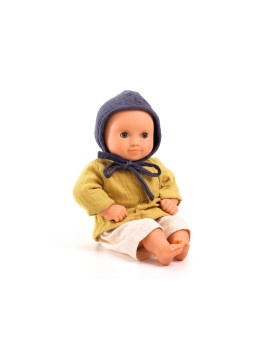 Avec ses beaux yeux marrons et sa tenue tendance, Baby Camomille est une poupée pour les enfants dès 18 mois. Elle est légère et sa taille (32 cm) est parfaitement adaptée aux petits bras. Son corps souple est imprimé d’un joli “body” et permet de la positionner comme un vrai bébé. Son visage, ses bras et ses jambes sont en vinyle très doux, agréable au toucher. Avec ses yeux dormeurs, elle s’endort quand on la couche sur le dos. Ce poupon de la collection POMEA de Djeco est habillé d’un bloomer, d’une chemise et d’un béguin en double Gaze 100 % coton.