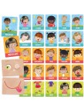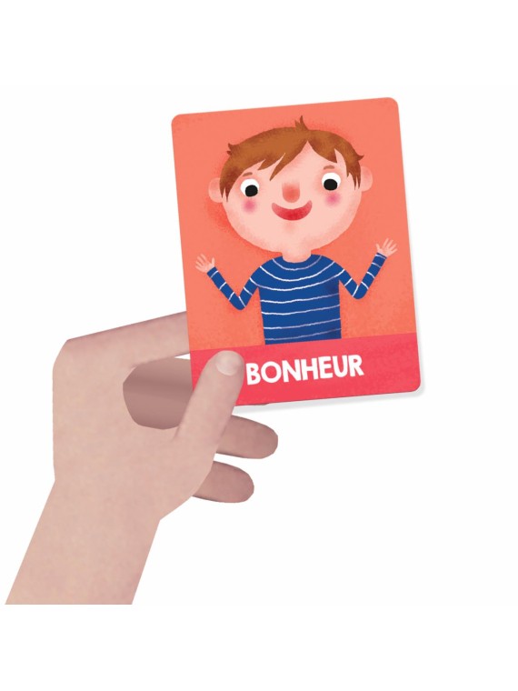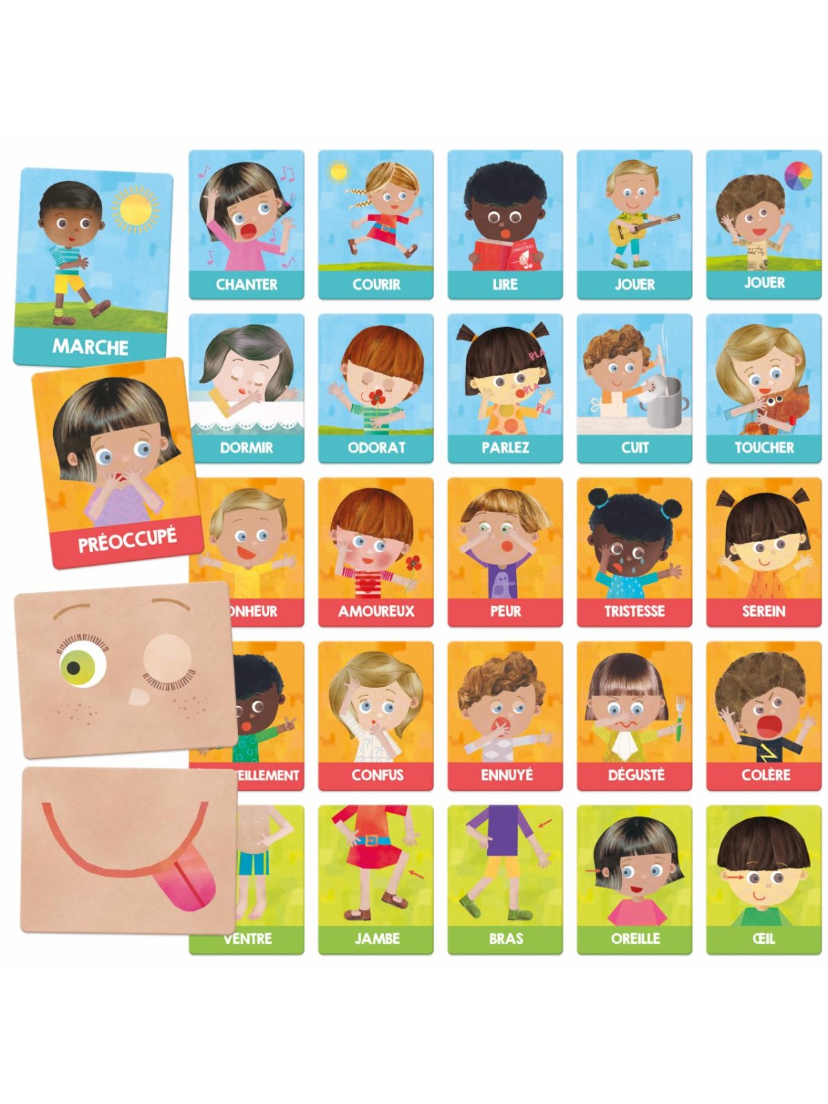 Quarante grandes cartes de nombreuses activités : reconnaître les émotions, les expressions du visage et les actions quotidiennes, en observant les attitudes des enfants représentés. On peut également jouer à inventer des visages rigolos !